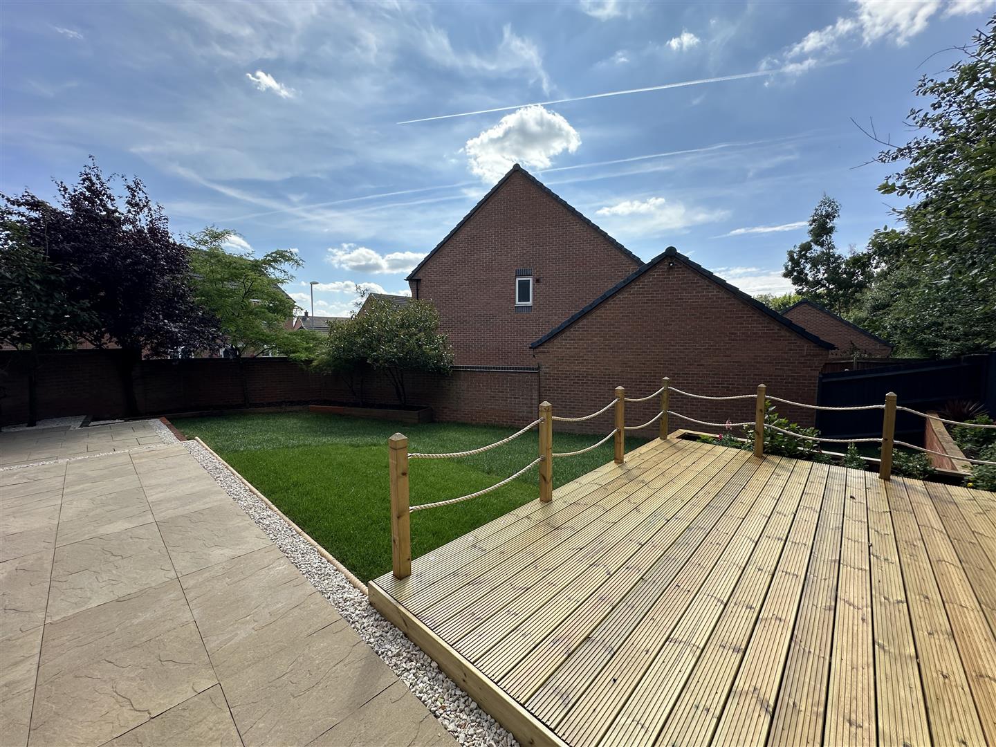 To the front elevation, the home benefits from off-road parking, while to the rear you’ll find a landscaped garden that has been thoughtfully designed to provide multiple seating and entertaining areas. Featuring newly renewed patio and decked areas, as well as a neat lawned garden, it offers a perfect outdoor space for children and entertaining alike. A large shed to the side provides excellent storage, and wired outdoor lighting ensures the garden can be enjoyed well into the evening.