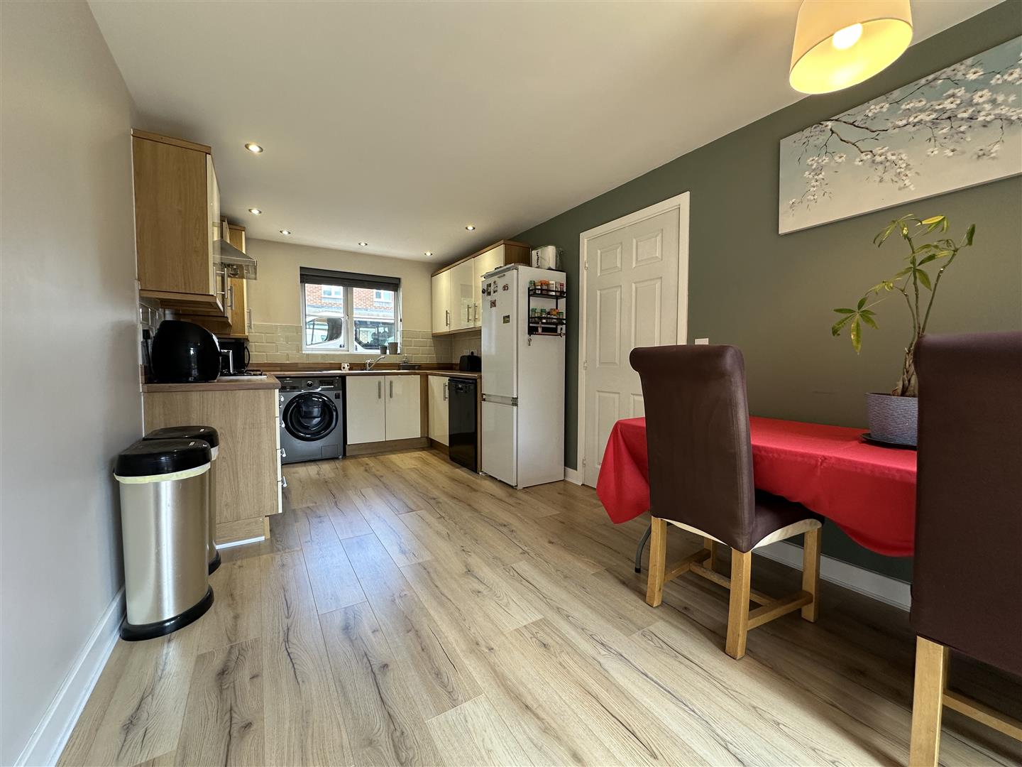 Internally, the accommodation opens into a spacious entrance hallway with convenient downstairs W/C. The dual-aspect reception room is bright and welcoming, with French doors opening directly onto the rear garden. The heart of the home is the stylish open-plan kitchen/diner, which features new flooring, modern cabinetry, ample dining space, and direct access to the garden via further French doors.